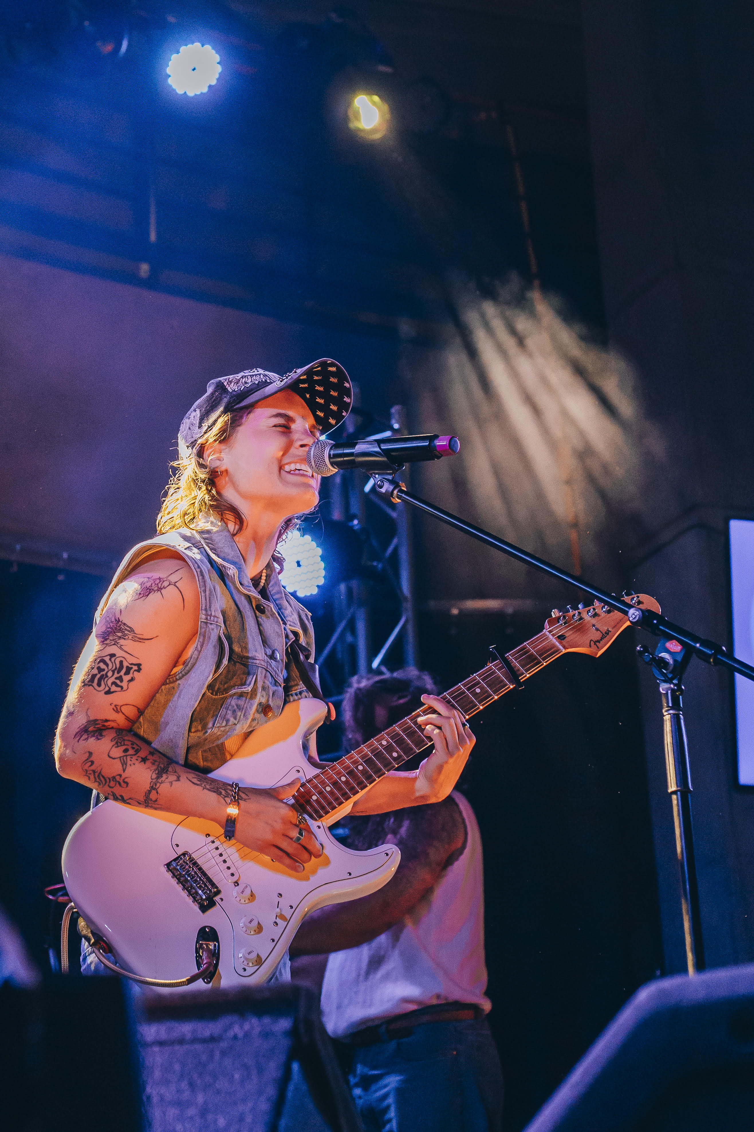 Avec sa voix souple qui navigue entre le chant et le rap, elle livre des histoires vraies, simples et désarmantes, sur des mélodies indie pop qui collent à la peau. Sur scène, elle dégage une liberté contagieuse, portée par une bande de musicien·nes complices et une énergie à la fois douce et électrique. Chaque spectacle devient un moment suspendu — quelque part entre l'introspection et la fête, entre la poésie et le quotidien.